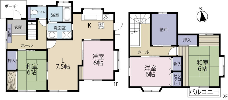 間取内容 | LDK7.5畳 洋室6畳 洋室6畳 和室6畳 和室6畳 S3.8畳 | ||